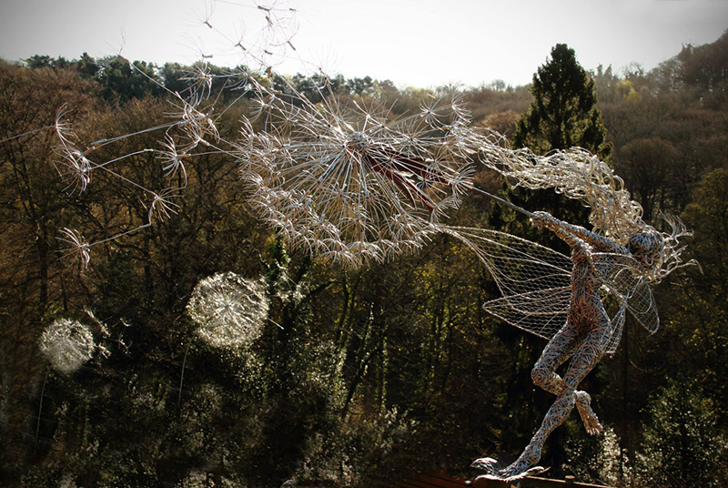 英国艺术家Robin Wight使用不锈钢丝创作出的雕塑简直让人大吃一惊!他塑造了有翅膀的精灵拿着飞翔的蒲公英在风中飞舞。迷人的造型,飞舞中扭动的身躯,正被风吹散的蒲公英,无不透着生命力,让它看起来栩栩如生。